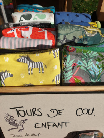 Nos Tours de cou ou Cache-cols sont fait avec des chutes de tissus, comme un patchwork bien pensé.
